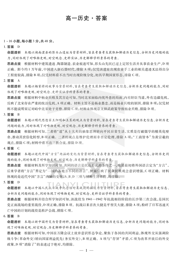 历史湖南高一下期末详细答案.pdf