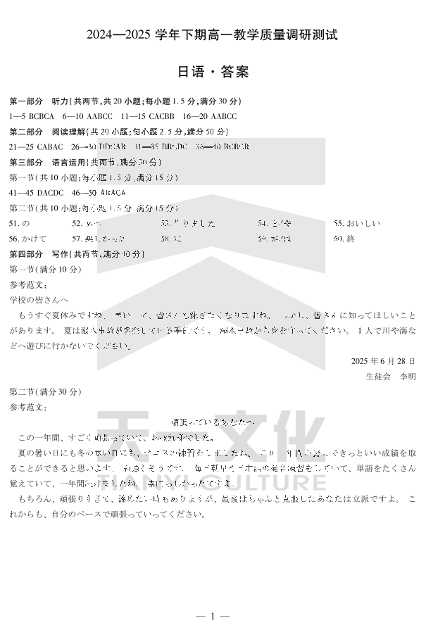 日语鹤壁高一下教学质量调研测试答案.pdf