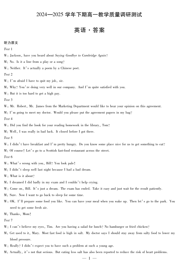 英语鹤壁高一下教学质量调研测试答案.pdf