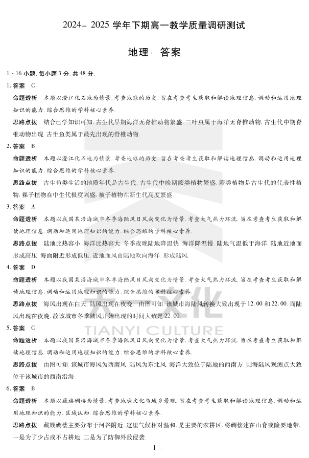 地理鹤壁高一下教学质量调研测试答案.pdf