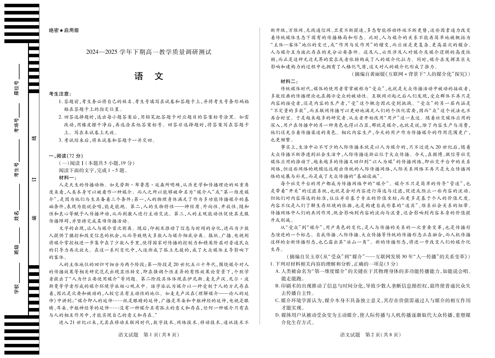 语文鹤壁高一下教学质量调研测试.pdf