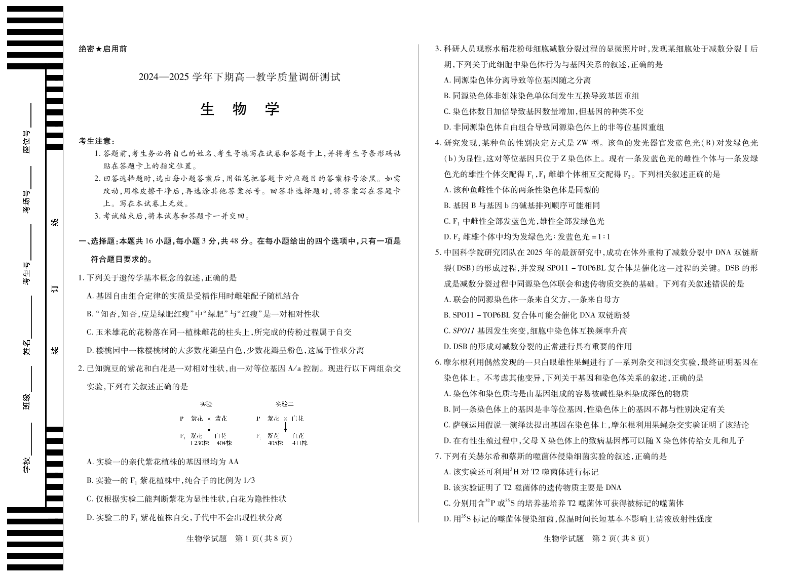 生物鹤壁高一下教学质量调研测试.pdf