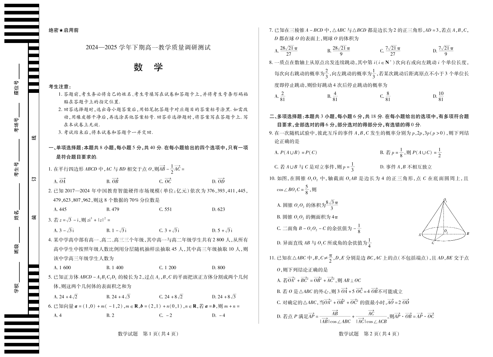 数学鹤壁高一下教学质量调研测试.pdf
