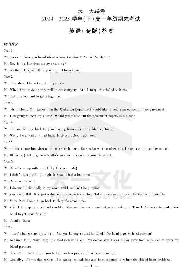 英语专版高一下期末答案.pdf