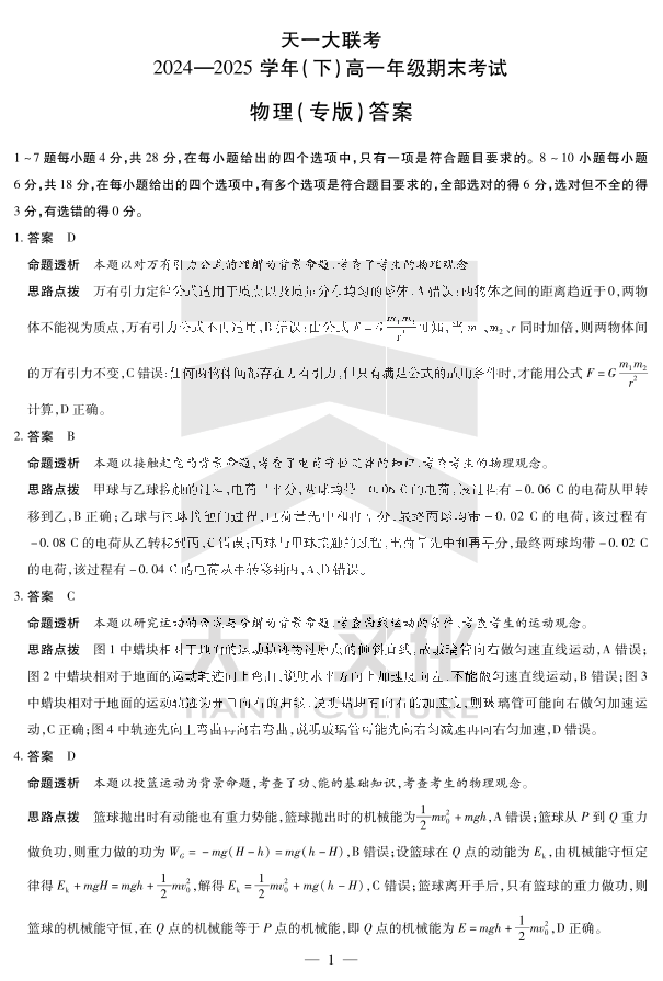 物理专版高一下期末答案.pdf