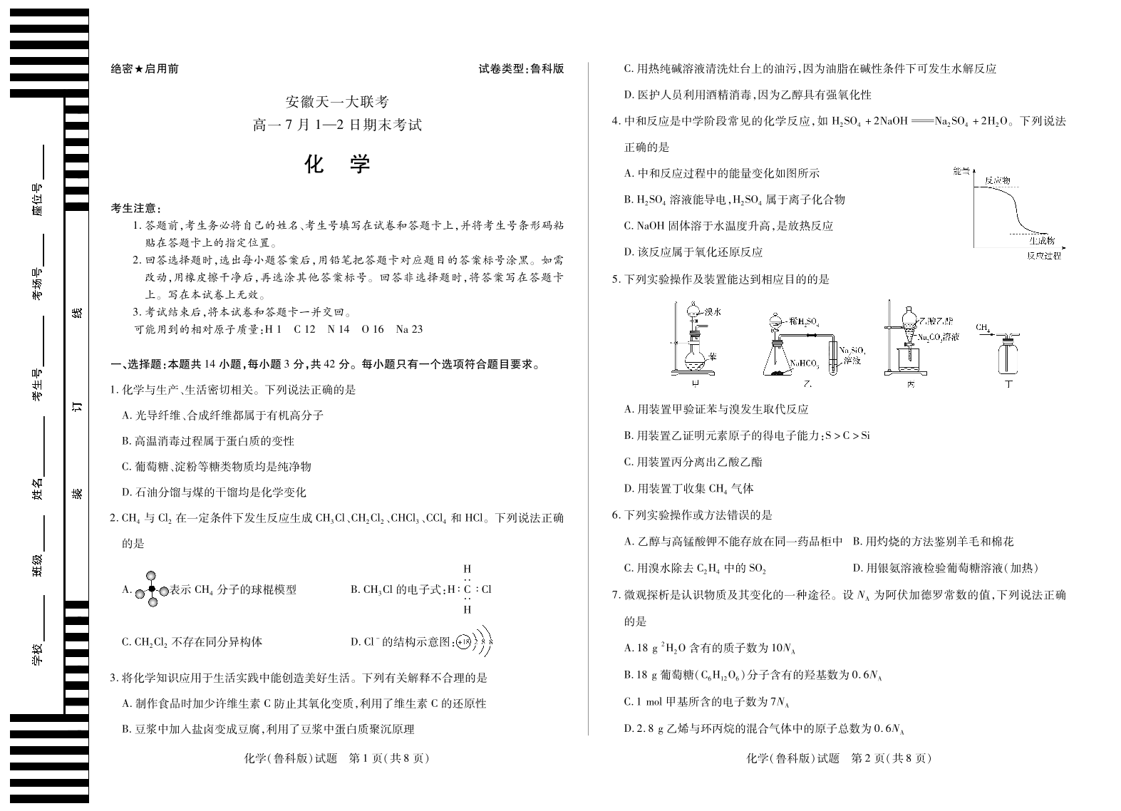 化学鲁科版徽高一7月期末试卷.pdf