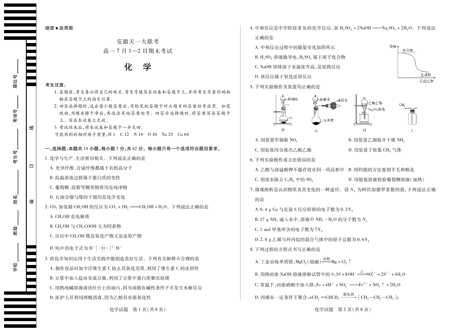 化学徽高一7月期末试卷.pdf