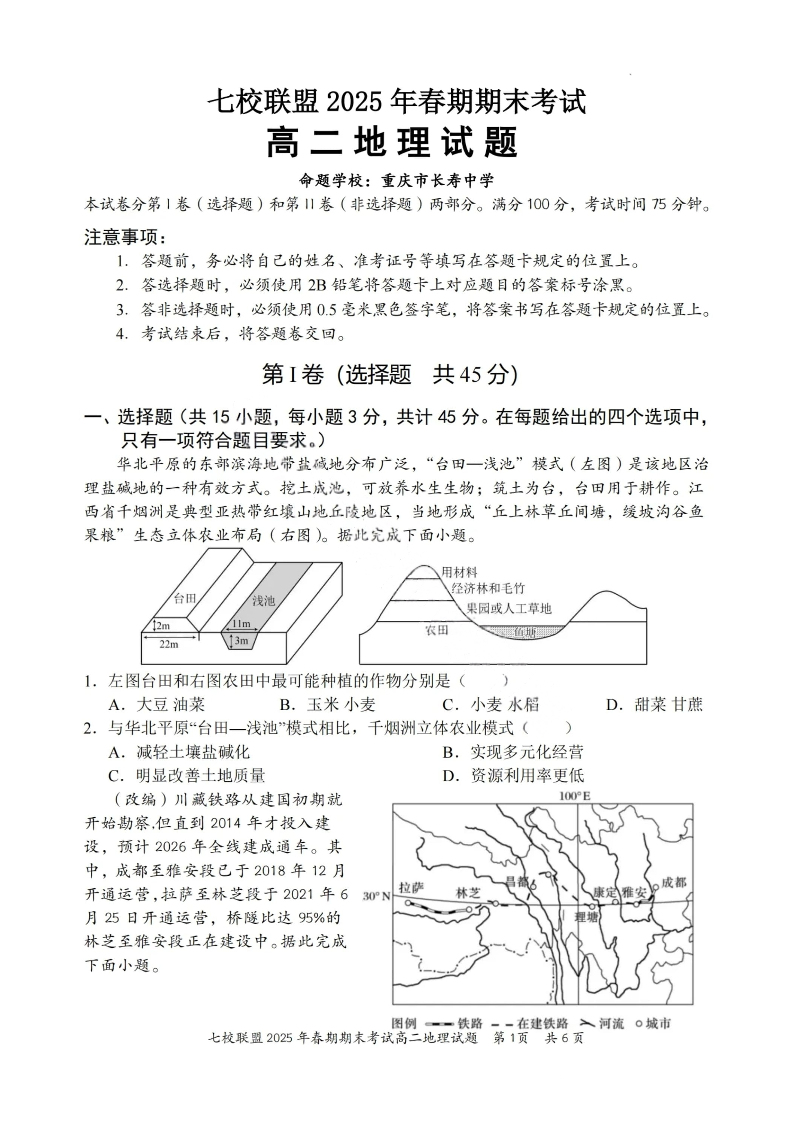 重庆市七校联盟2025年春期高二年级期末考试 地理试卷(含答案).pdf