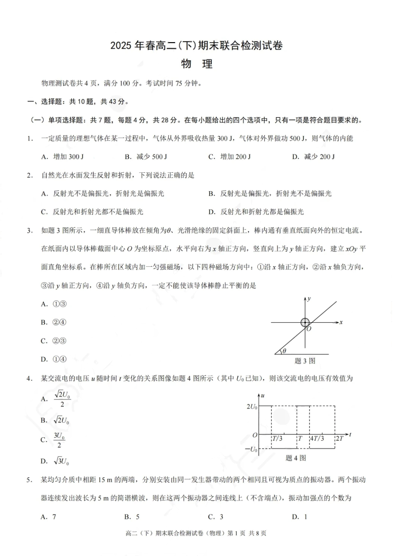 重庆市康德教育2025年春高二(下)期末联合检测试卷 物理试卷(含答案).pdf