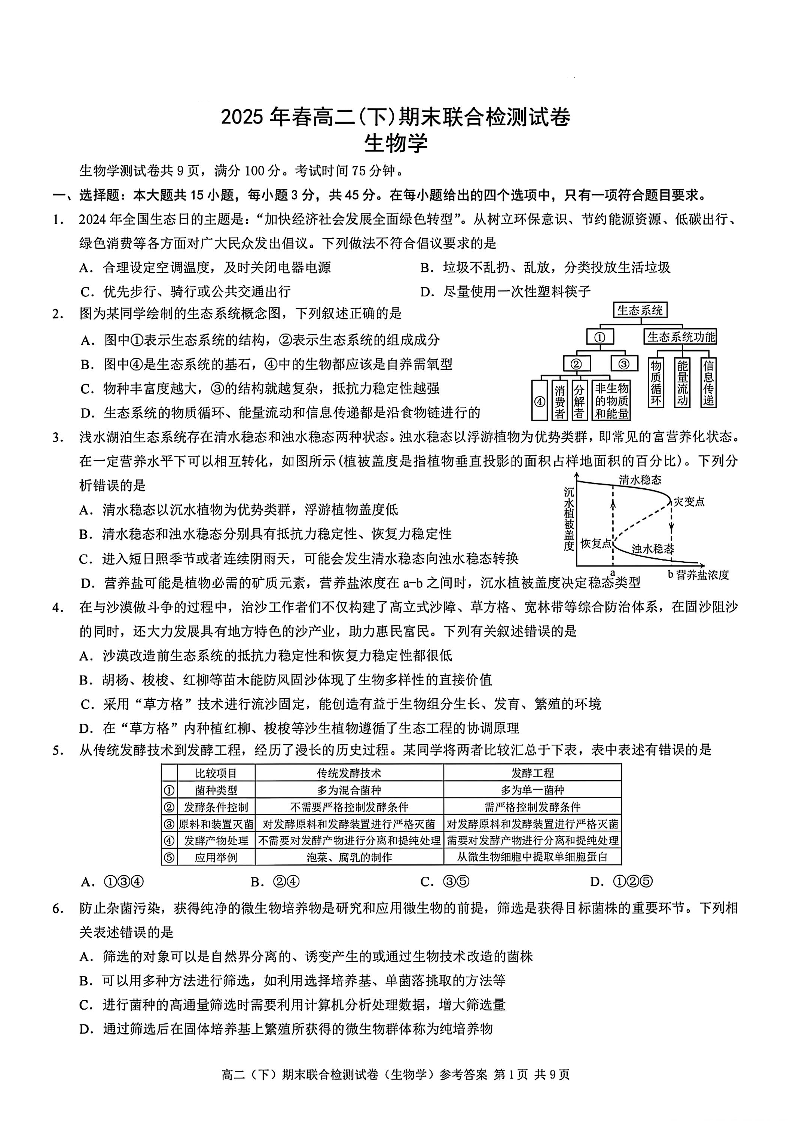 重庆市康德教育2025年春高二(下)期末联合检测试卷 生物试卷(含答案).pdf