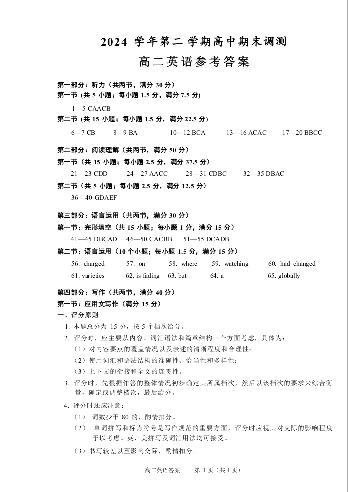 英语试题卷|2506绍兴高二下期末统考答案.docx