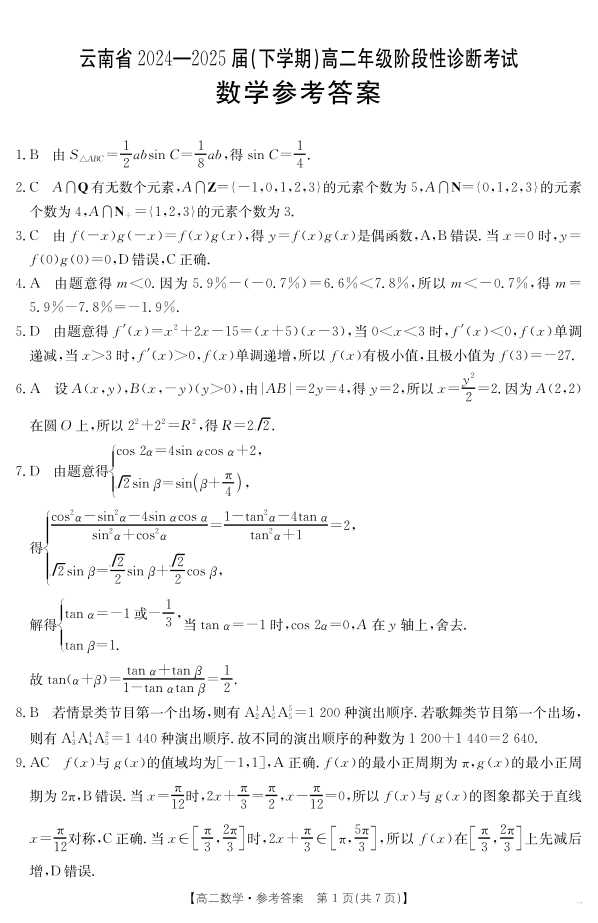 云南省曲靖市2024-2025届高二下学期阶段性诊断考试 数学答案.pdf