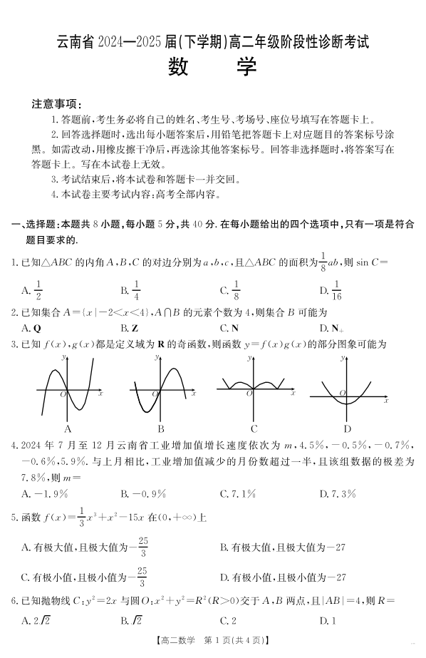 云南省曲靖市2024-2025届高二下学期阶段性诊断考试 数学.pdf