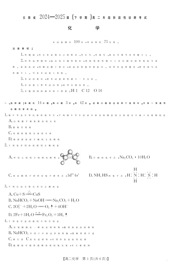 云南省曲靖市2024-2025届高二下学期阶段性诊断考试 化学.pdf