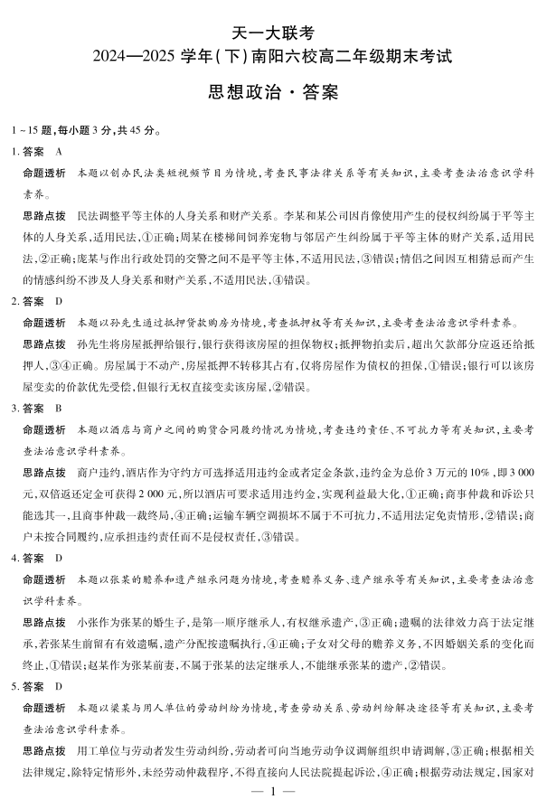 政治南阳六校高二下期末详细答案.pdf