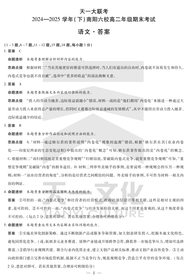 语文南阳六校高二下期末详细答案.pdf