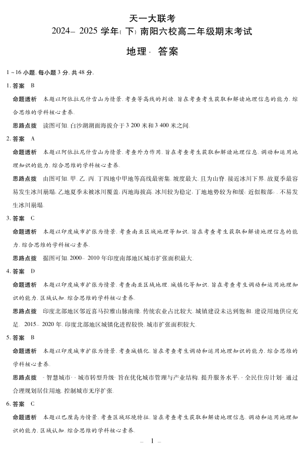 地理南阳六校高二下期末详细答案.pdf