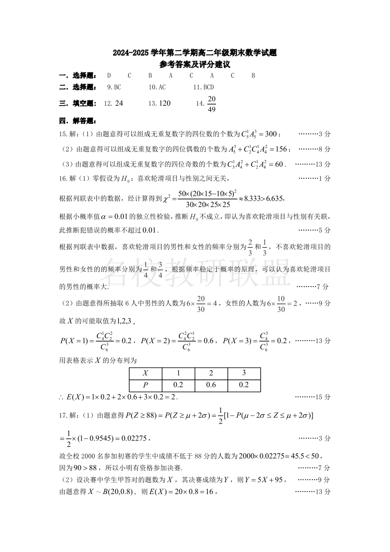 太原市2024-2025学年第二学期高二年级期末学业诊断 数学答案.pdf