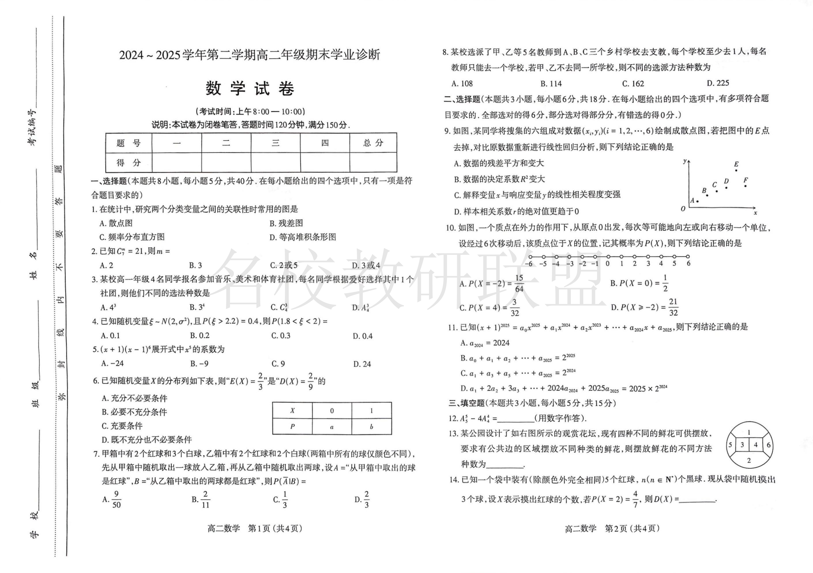 太原市2024-2025学年第二学期高二年级期末学业诊断 数学.pdf