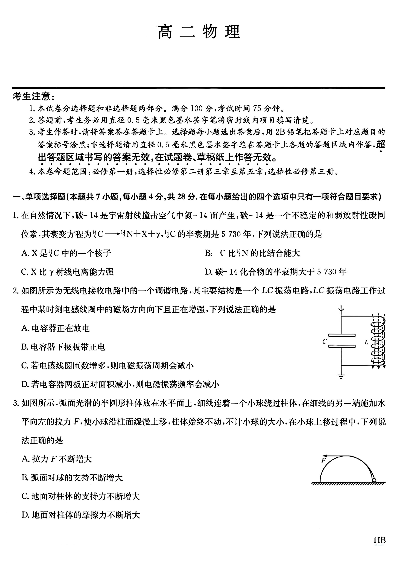 河北九师联盟2024-2025学年高二下学期期末质量检测 物理试卷(含答案).pdf