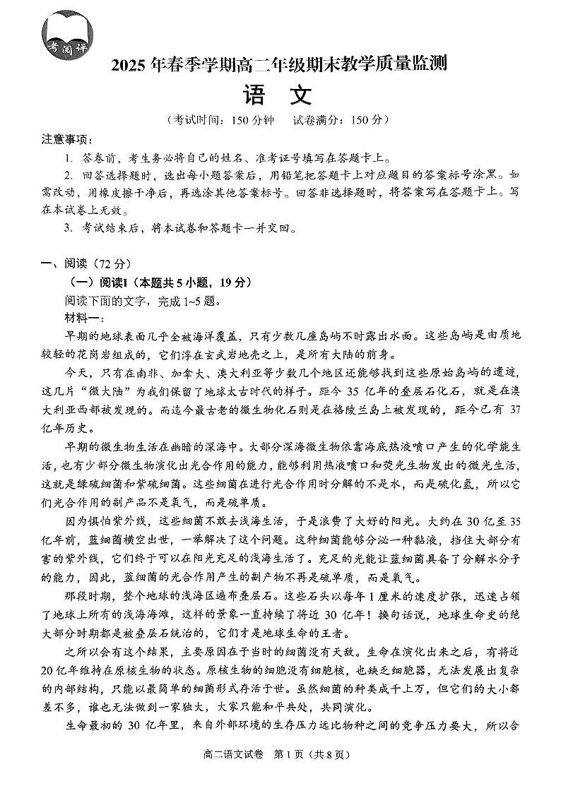 南宁部分学校2025年春季学期高二年级期末教学质量监测 语文.pdf