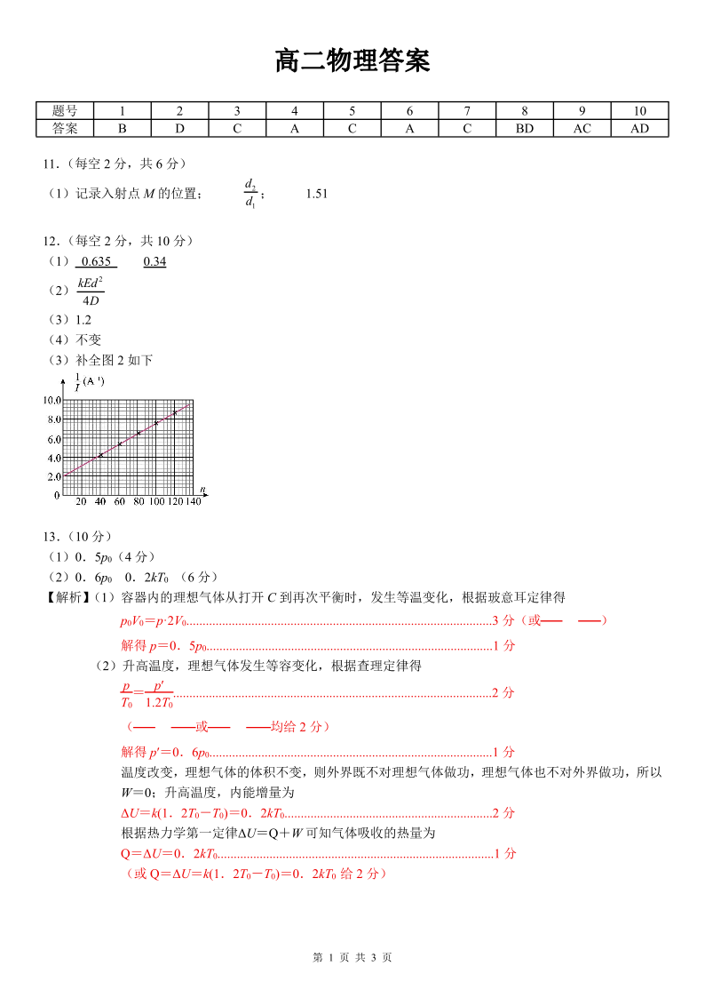 南宁部分学校2025年春季学期高二年级期末教学质量监测 物理答案.pdf