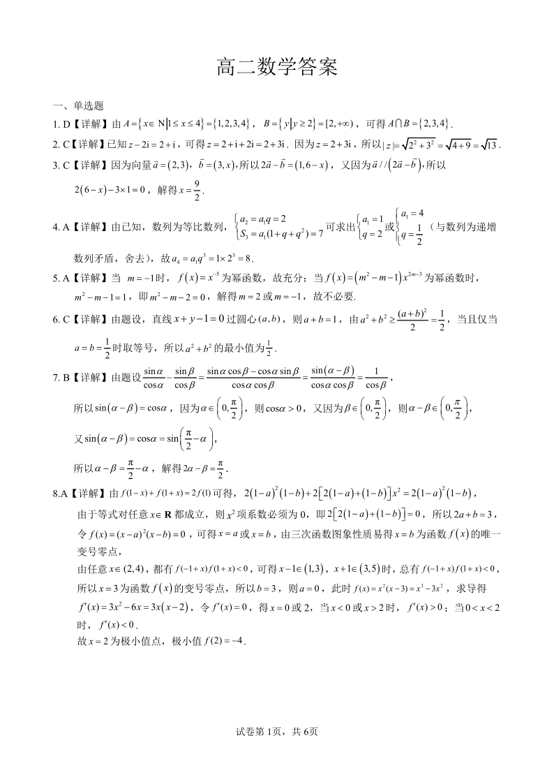 南宁部分学校2025年春季学期高二年级期末教学质量监测 数学答案.pdf