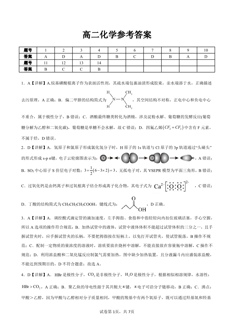 南宁部分学校2025年春季学期高二年级期末教学质量监测 化学答案.pdf