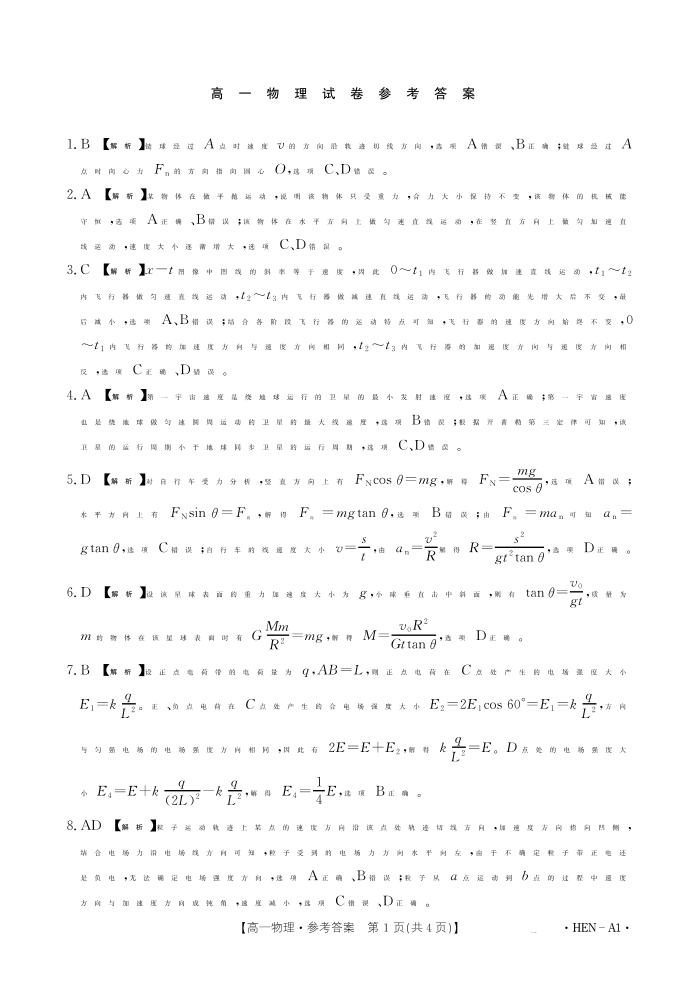 河南省2024-2025学年高一下学期6月百万大联考 物理答案.pdf