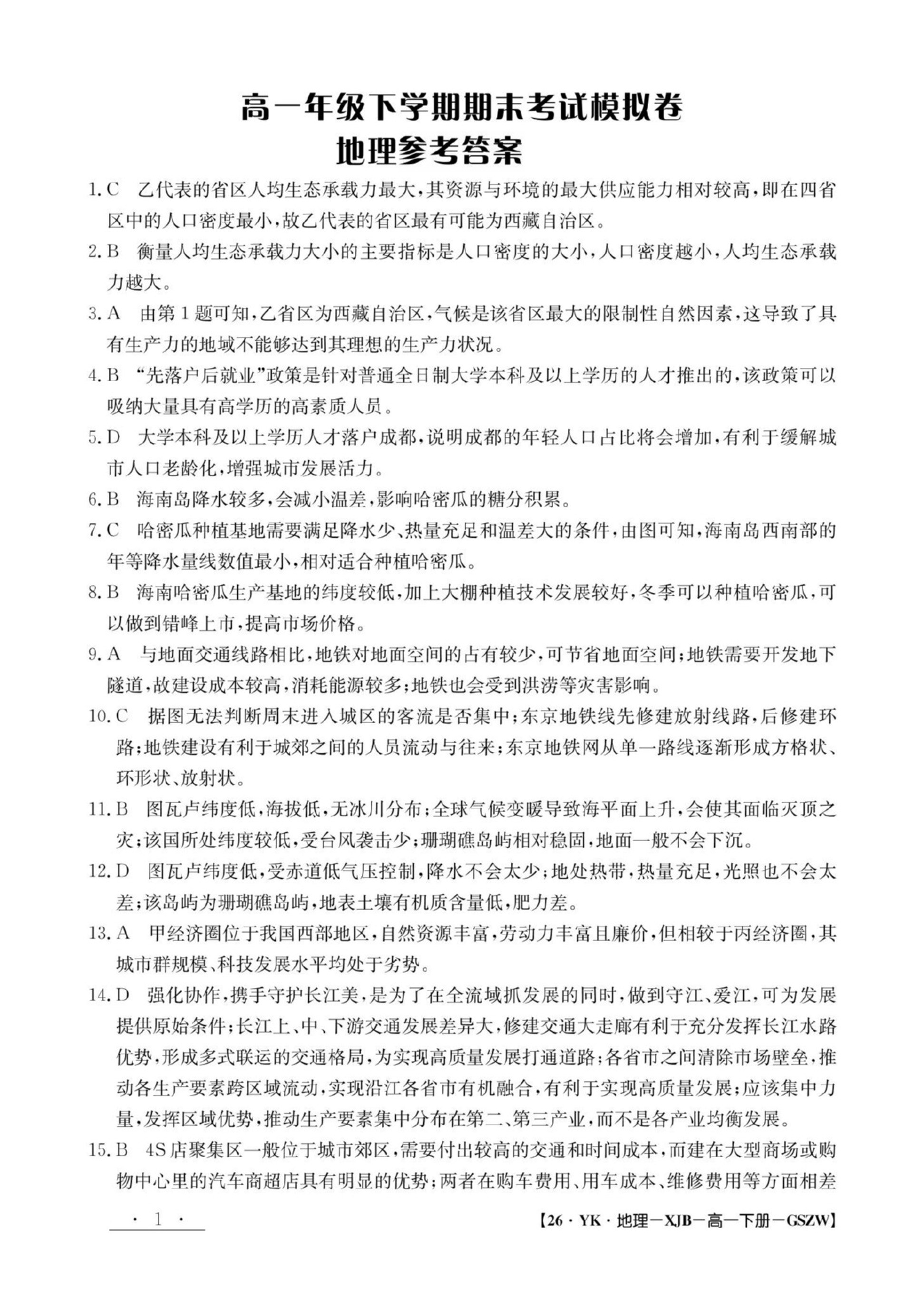 甘肃省2024-2025学年高一年级下学期期末考试模拟卷 地理答案.pdf