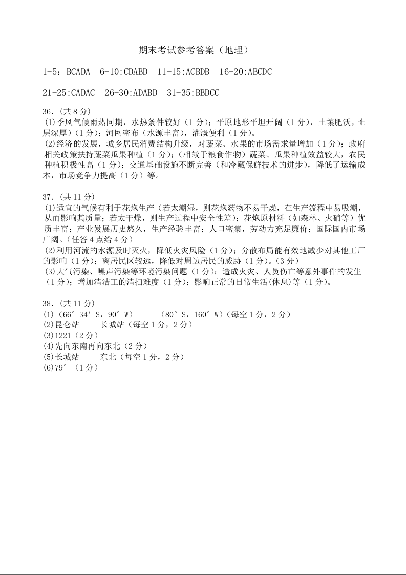 四川省成都市第七中学2024-2025学年度下期高一期末测试 地理答案.docx