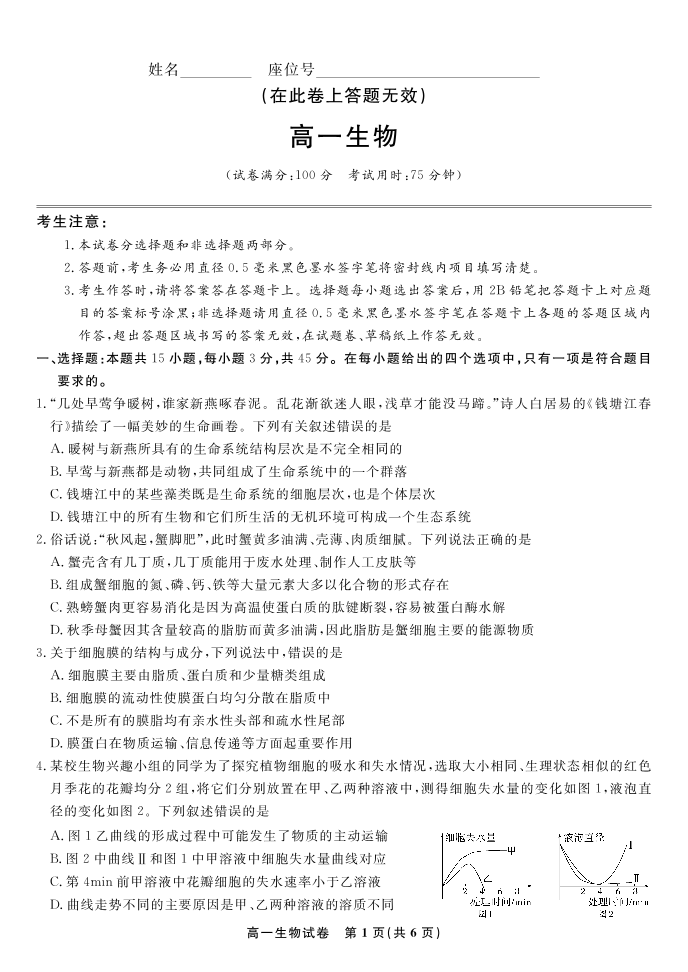 生物试题·2025年7月高一期末联考.pdf