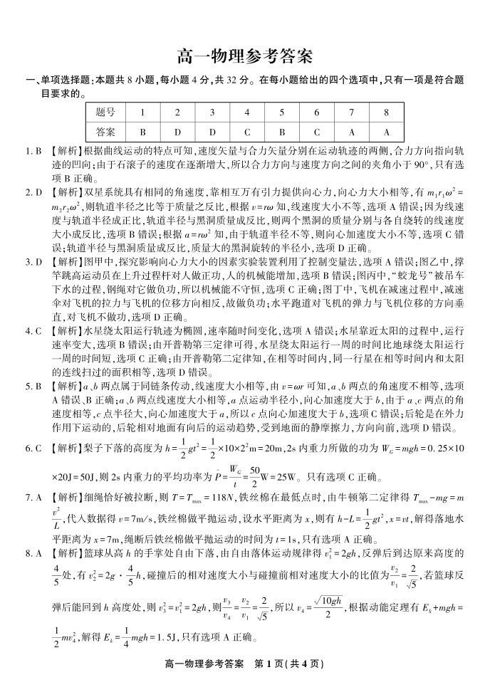 物理答案·2025年7月高一期末联考.pdf