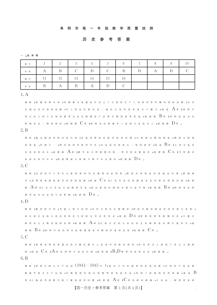 安徽省阜阳市2024-2025学年高一年级期末教学质量检测 历史答案.pdf