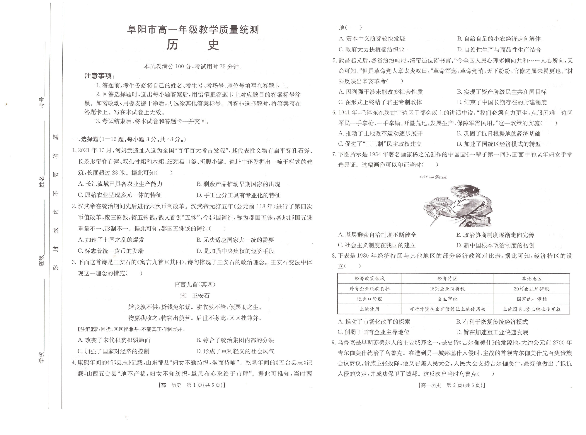 安徽省阜阳市2024-2025学年高一年级期末教学质量检测 历史.pdf