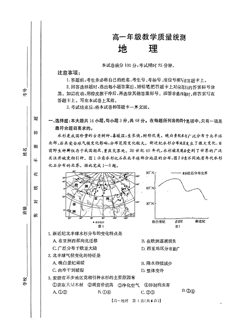 安徽省阜阳市2024-2025学年高一年级期末教学质量检测 地理.pdf