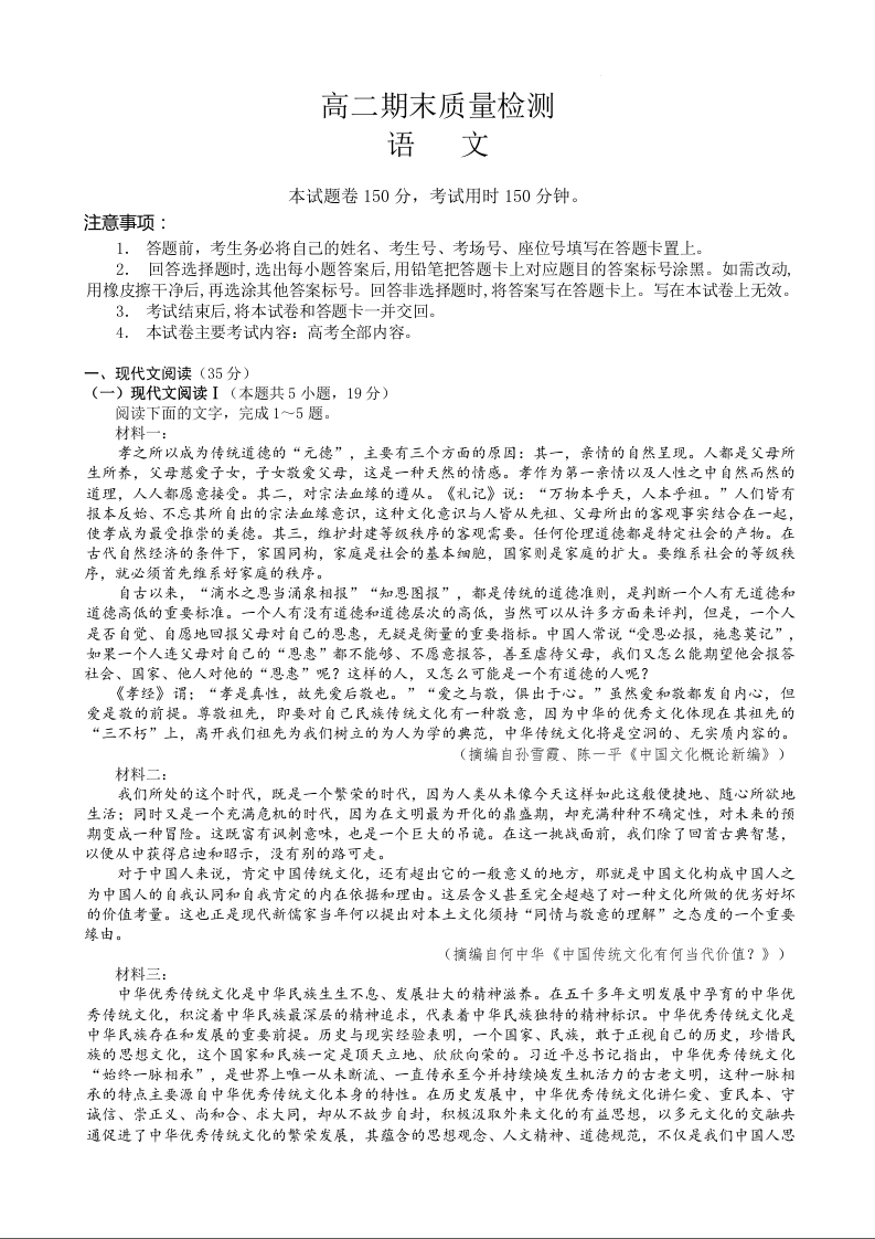 陕西省2024-2025学年高二期末教学质量检测 语文(含答案).docx