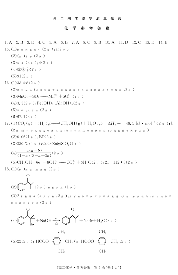 陕西省2024-2025学年高二期末教学质量检测 化学答案.pdf