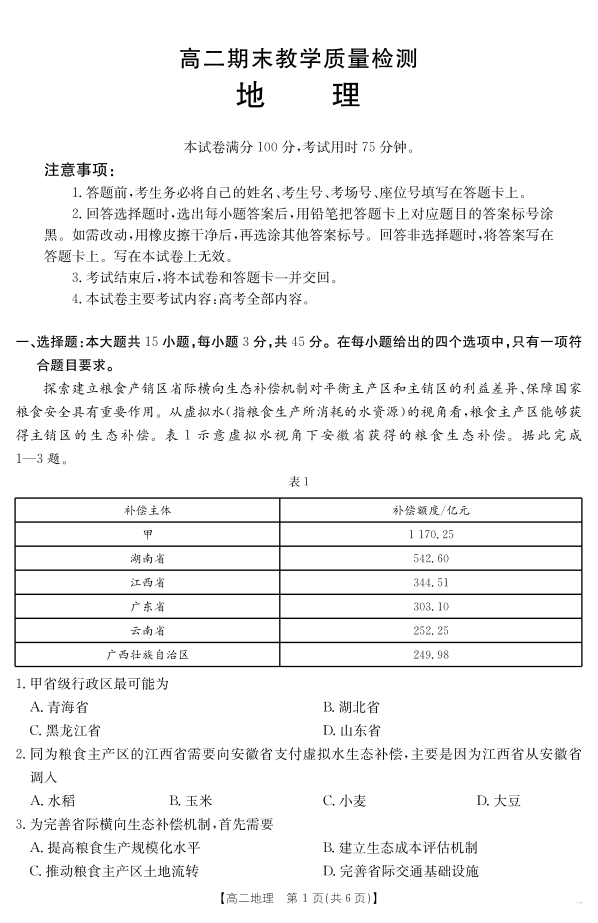 陕西省2024-2025学年高二期末教学质量检测 地理.pdf
