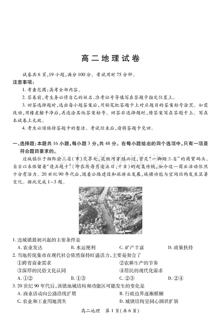 江西省上进联考2024-2025学年下学期高二年级期末考试 地理试卷(含答案).pdf