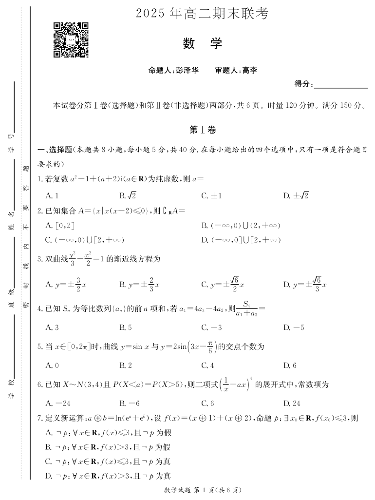 数学试卷(高二期末联考).pdf