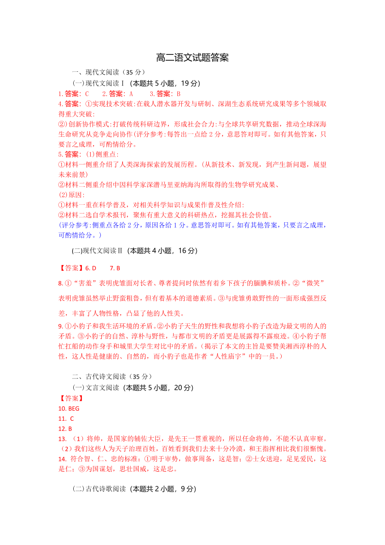孝感市部分高中联考2024-2025学年高二下学期7月期末联考 语文答案.pdf