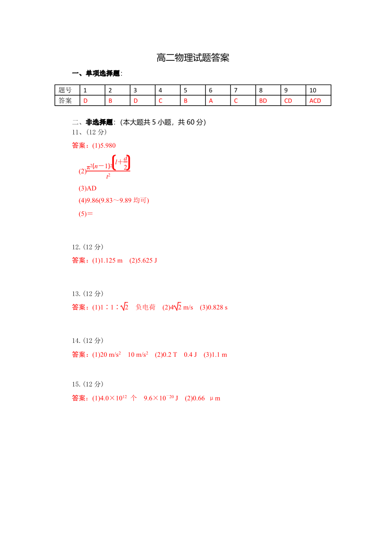 孝感市部分高中联考2024-2025学年高二下学期7月期末联考 物理答案.pdf