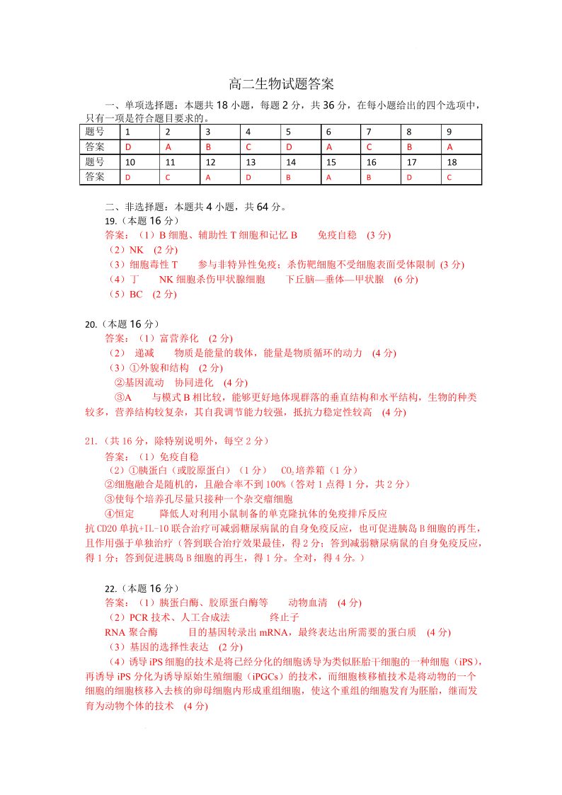 孝感市部分高中联考2024-2025学年高二下学期7月期末联考 生物答案.pdf