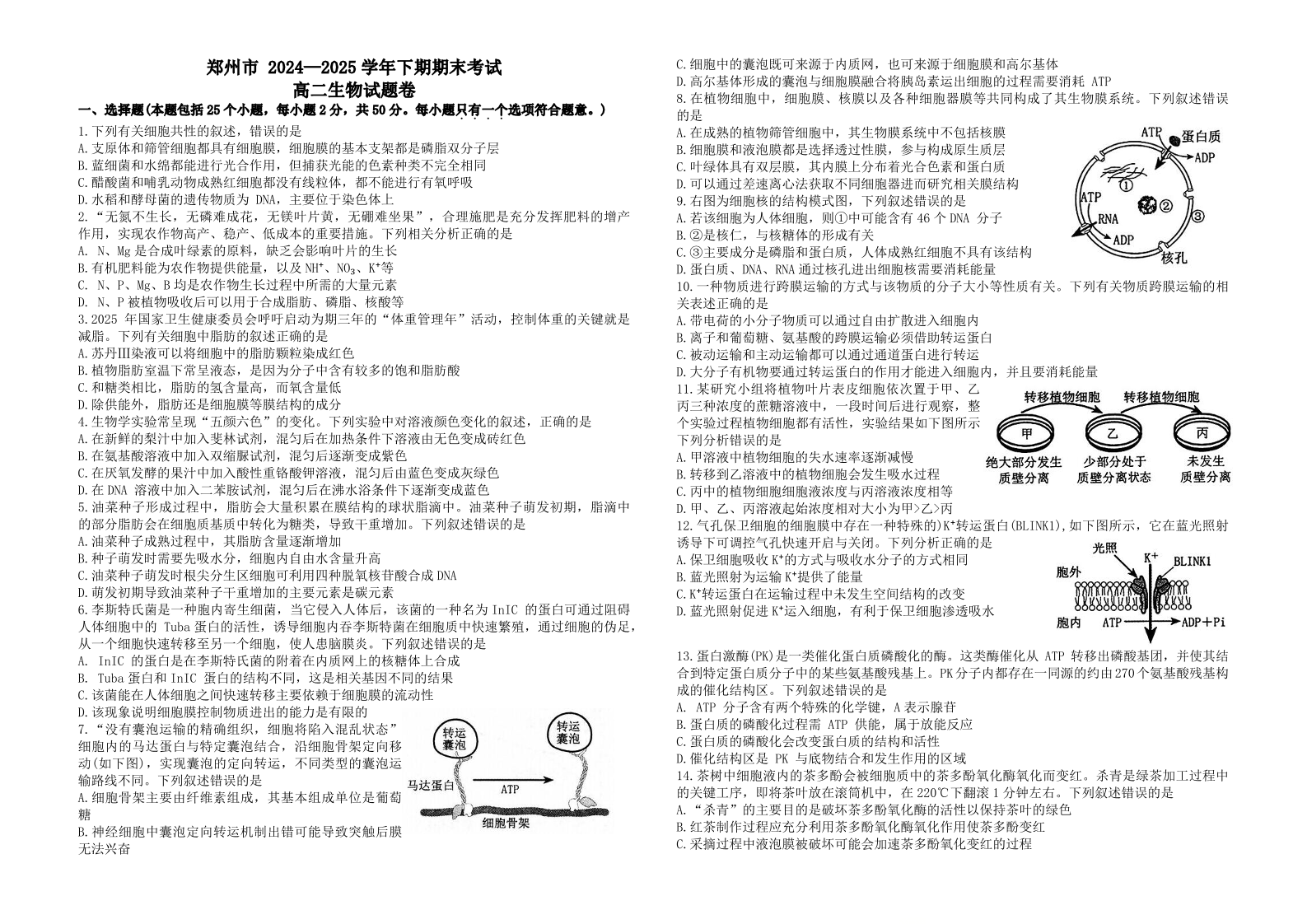 河南省郑州市2024-2025学年下期高二年级下学期末考试 生物.pdf