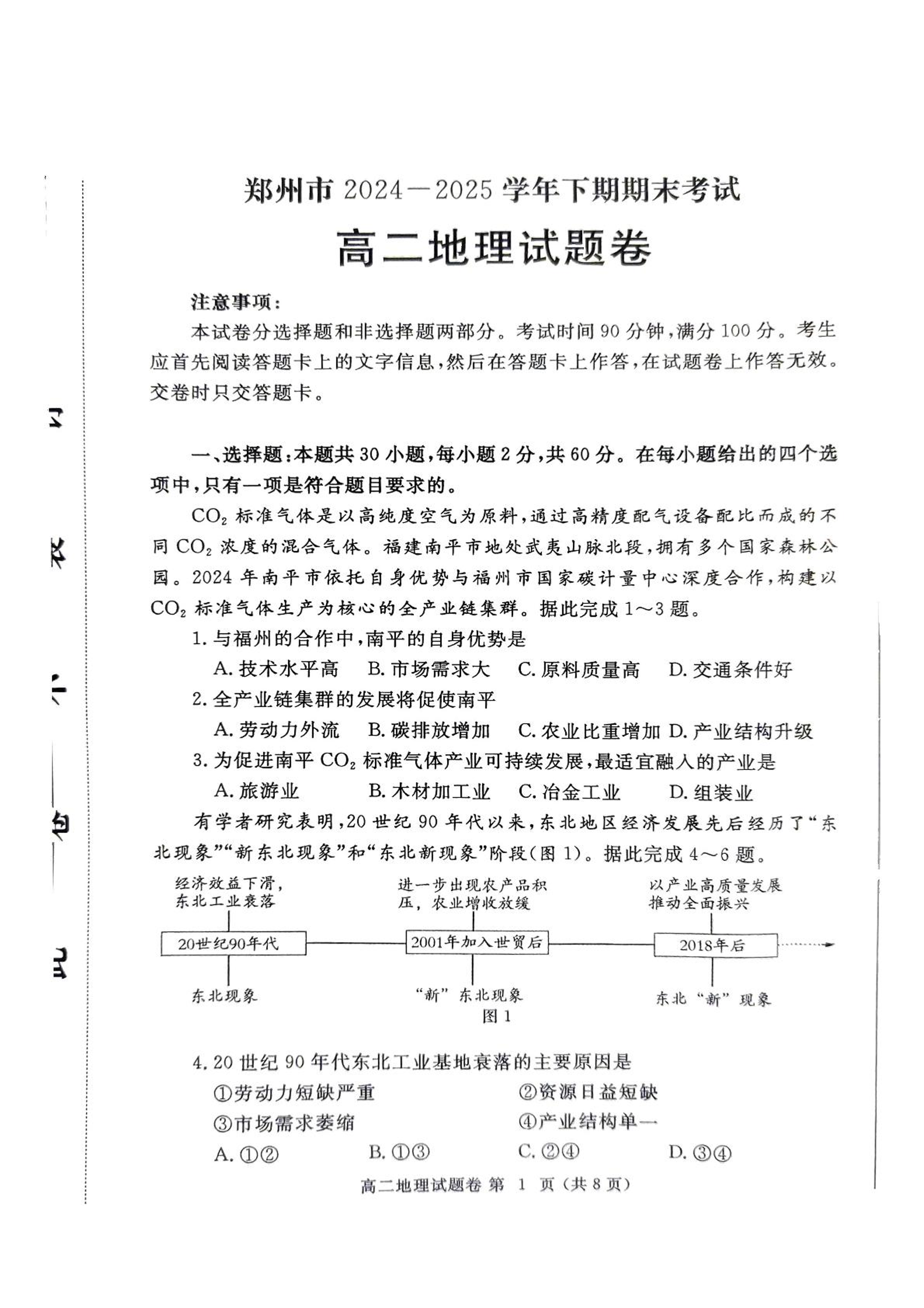 河南省郑州市2024-2025学年下期高二年级下学期末考试 地理.pdf