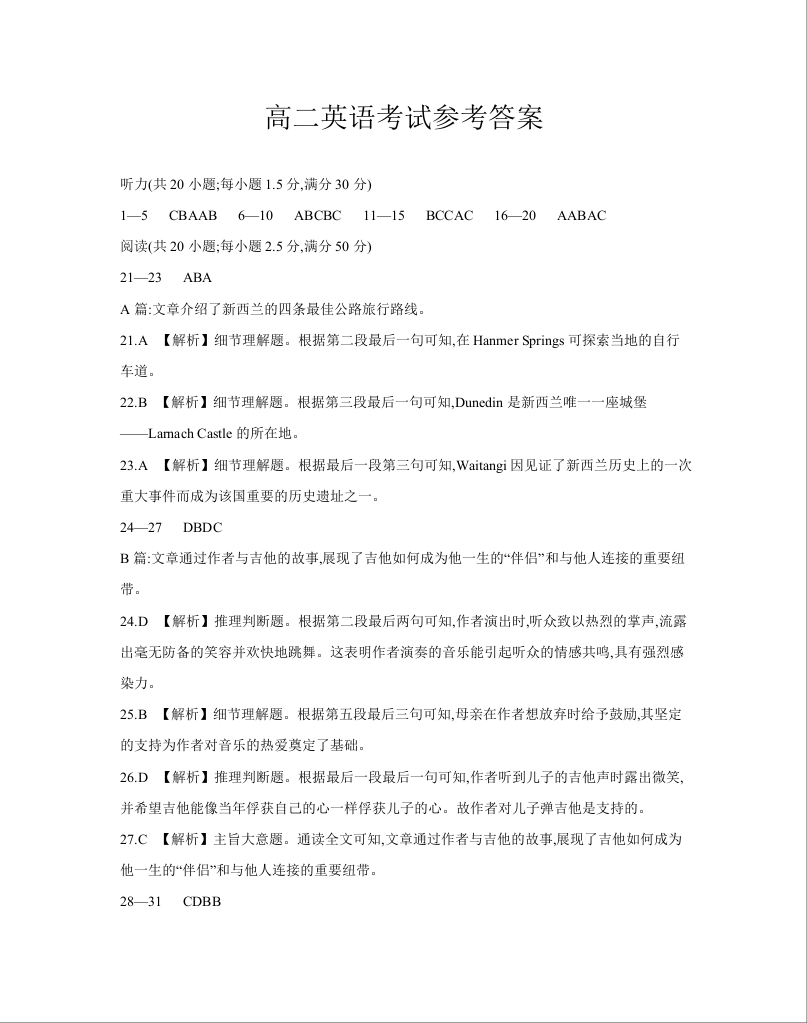 河南省2024-2025学年高二下学期6月百万大联考 英语答案.docx