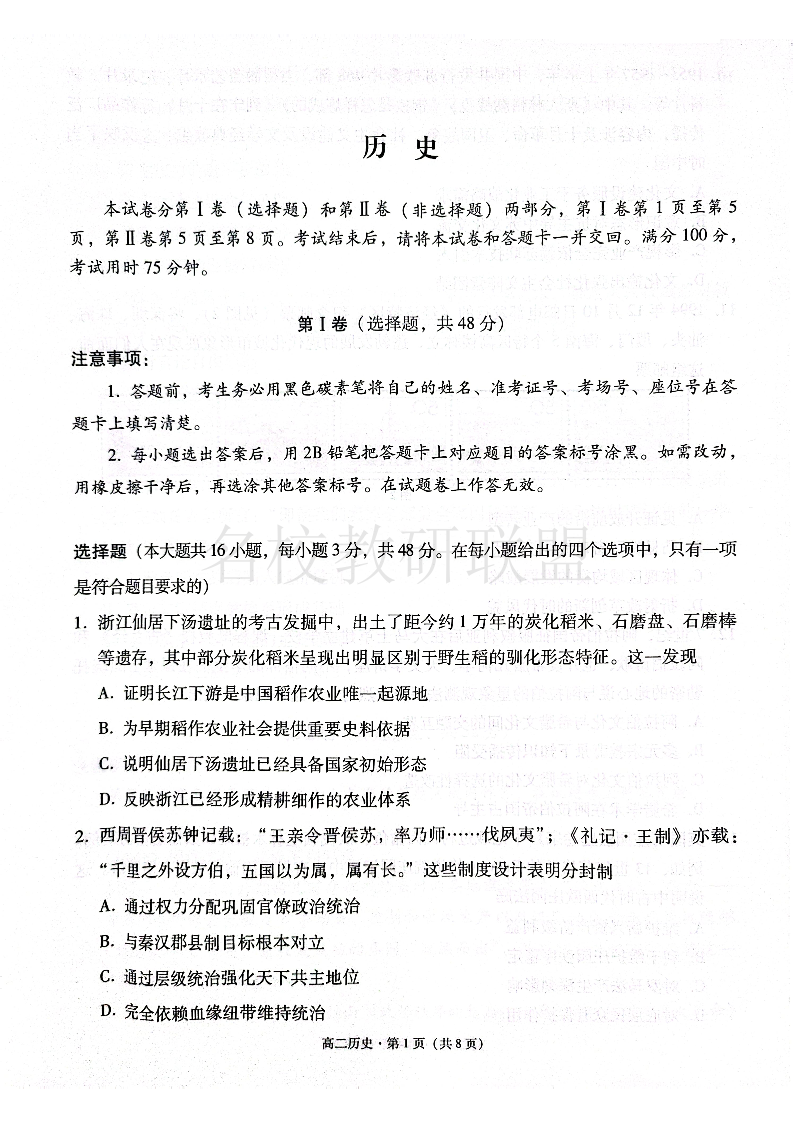 贵州省贵阳市2024-2025学年高二下学期期末考试 历史试卷(含答案).pdf