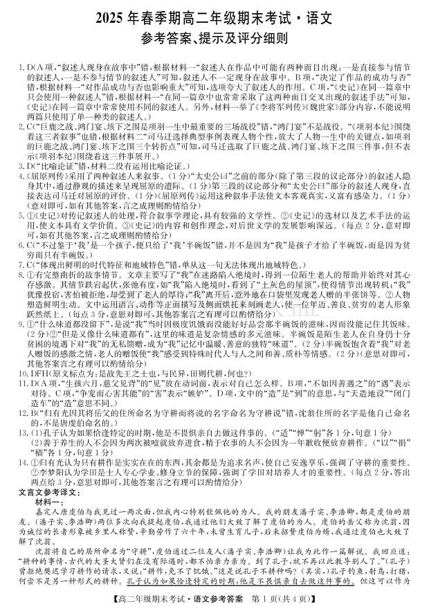 梧州市2025年春季期高二年级7月期末考试 语文答案.pdf