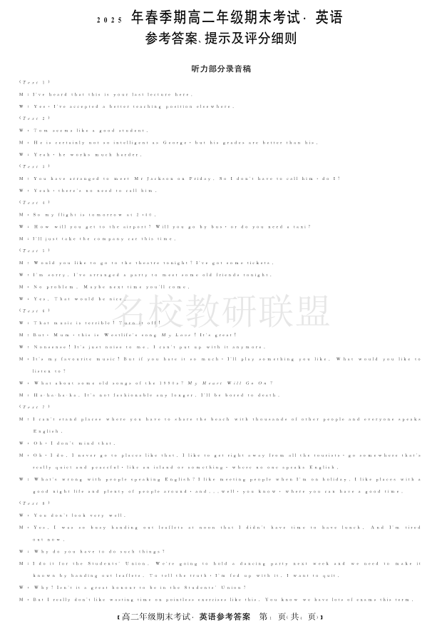 梧州市2025年春季期高二年级7月期末考试 英语答案.pdf